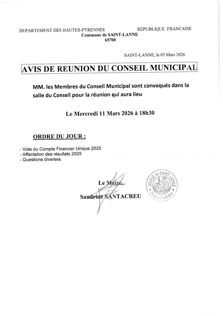 Convocation au Conseil Municipal du 11/03/2026